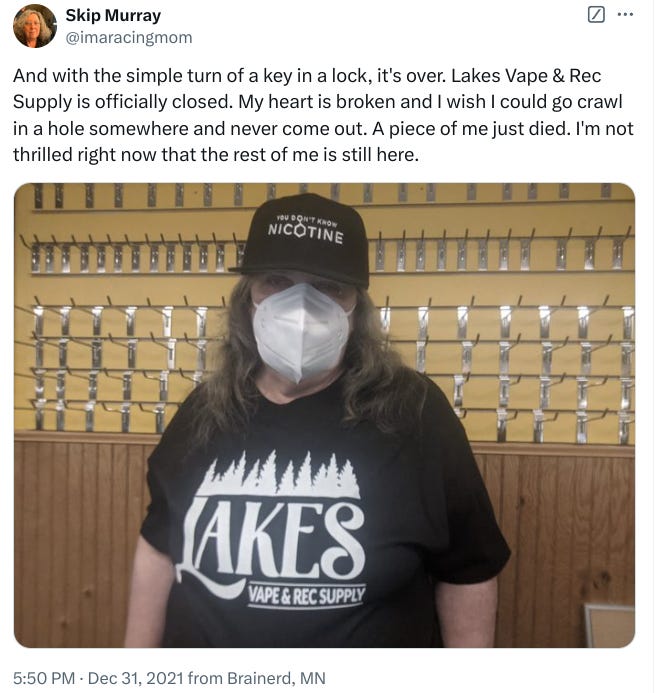 I want to return to New Year’s Eve 2021, the day I alluded to earlier. That was the last day my vape shop was open.